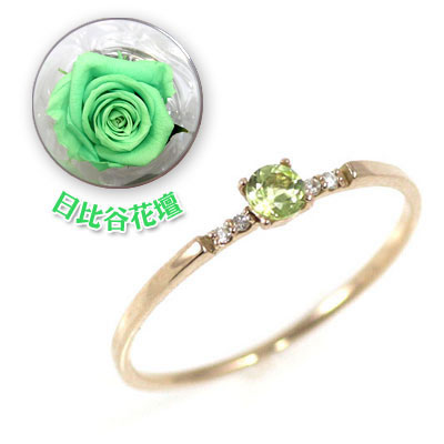 誕生石色バラ付ジュエリー今ならラッピング無料◆( 8月誕生石 ) K18ピンクゴールド ペリドットリング(日比谷花壇誕生色バラ付)★送料無料【SUEHIRO】